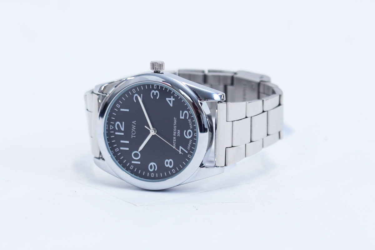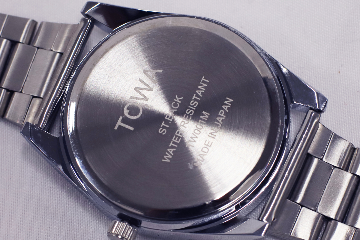 シルバー TW001M-1 ブラック TW001M-3 裏面・接続部分 防水機能 日常生活防水 バンド SSバンド ケースサイズ 40mm ベルト フリーアジャスター 生産国 日本製 製品 腕時計 TW002M